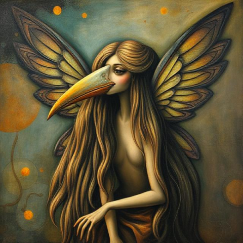 So manch süße Verlockung führt am Ende dazu, daß die Harpyien dich davontragen. Eine Harpyie ist ein Todesvogel, die den Geist des Verstorbenen in ihrem Schnabel zum Tartaros trägt. In den früheren Erzählungen der griechischen Mythologie werden Harpyien als schöne Frauen mit gelocktem Haar und Vogelflügeln beschrieben. Erst die Chr*sten machen sie zu häßlichen hellhaarigen Dämonen. Die Harpyien wohnen in einer Höhle auf Kreta und müssen auf Geheiß des Zeus Seelen von Toten in den Tartaros tragen oder Leute töten, die seinen Zorn erregen. Die Harpyien werden als schnell wie der Wind und als unverwundbar beschrieben. In der nordischen Mythologie sind uns diese Todesvogelfrauen als Walküren bekannt. In der chr*stlichen Mythologie werden sie zu Engeln. Bei den Maya sind es Pelikane. Andersherum bringt der Storch in seinem Schnabel dann wiederum das Neugeborene. Eine wunderschöne Mythologie, die heute nur noch rudimentär bekannt ist.