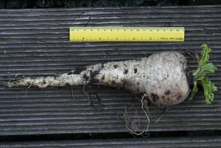 Der Schnee hat diesen Winter unsere Pastinaken bestens geschützt, so daß wir jetzt im März die letzten Pastinaken aus dem Vorjahr ernteten.