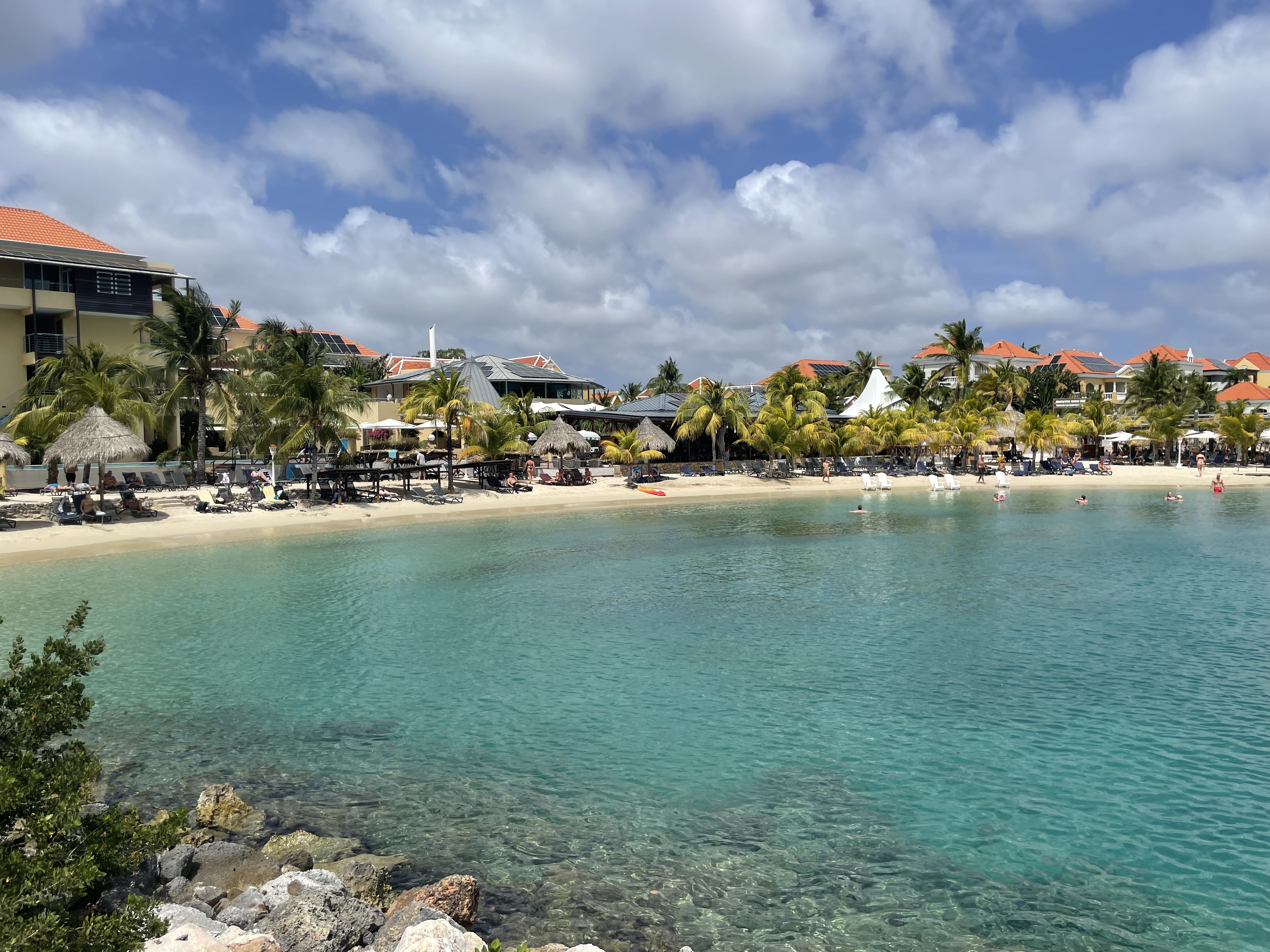 Die Unterkunft selbst erfüllt die europäischen Standards, da es Holländer waren, die diese Einrichtung gebaut haben und bis heute führen, man fühlt sich also richtig wohl hier. Wenn die Sonne auf das Wasser scheint, kommt das Türkis richtig zur Geltung. Die Wellenbrecher sorgen für ein schönes Badeerlebnis.