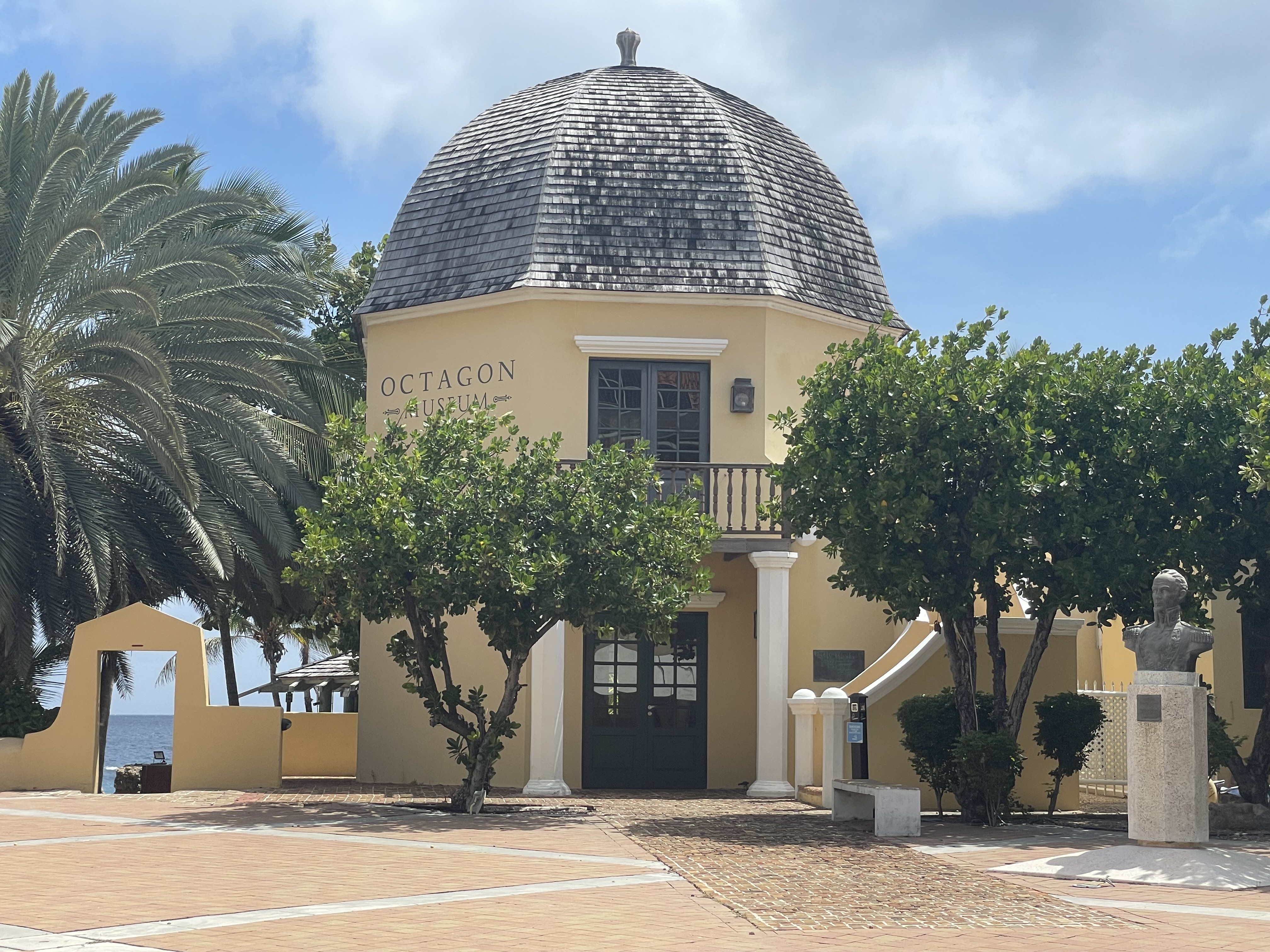 Hier das achteckige Haus, in welchem Simón Bolívar in Curaçao untergekommen war. Es ist heute ein Museum bei der Hotelanlage des Avila Beach Hotels, wo wir uns befinden.